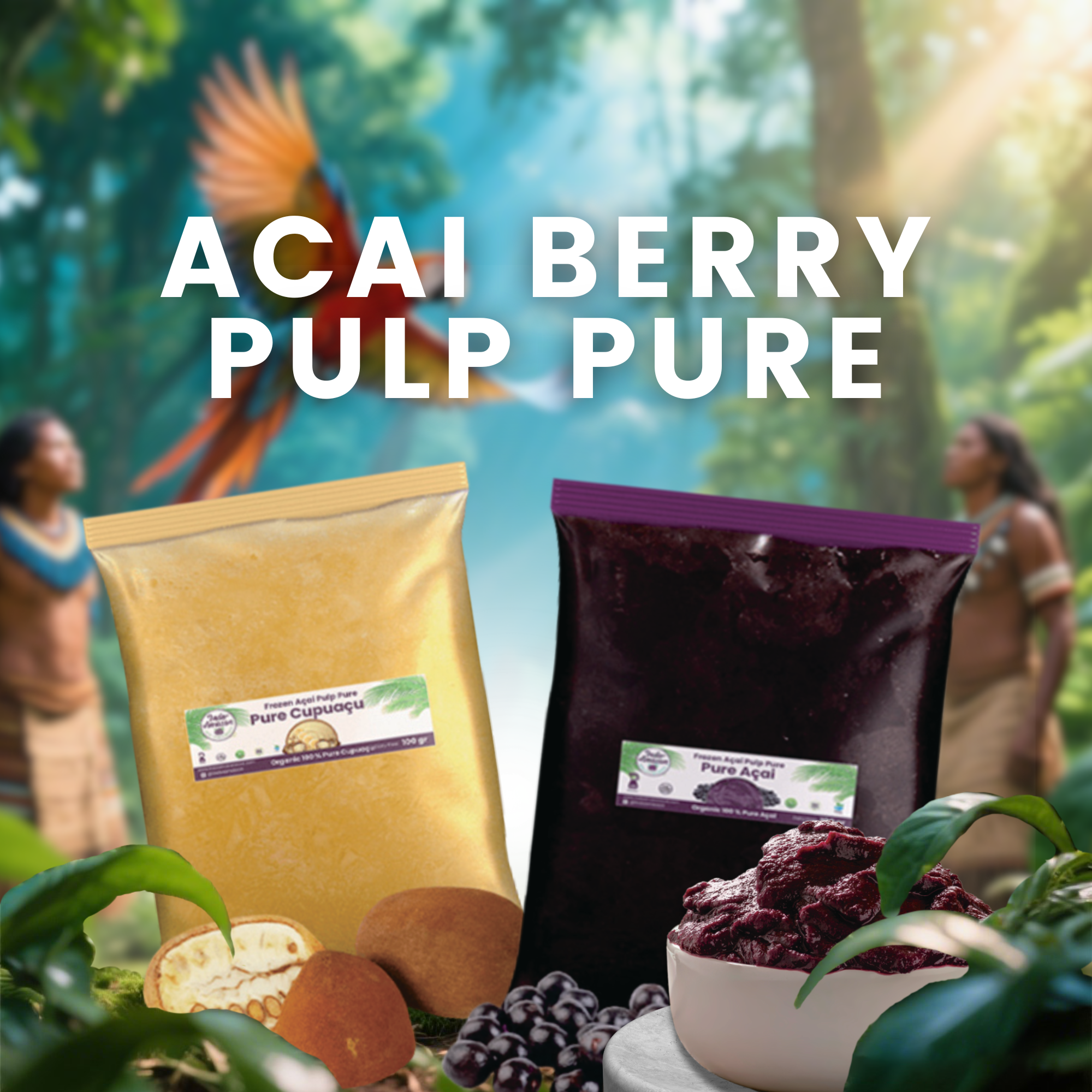 100% pure premium, organic frozen açai, camu-camu, cupuaçu, acerola pulp puree and other Amazon forest super-fruits, perfect to blend with fresh fruits to make healthy & delicious açai bowls and smoothies at home.