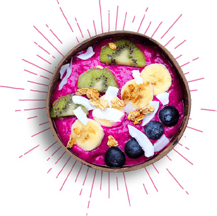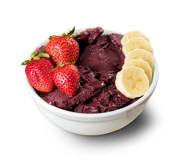 Before creating a Picasso-esque array of fruit toppings as garnish atop of your acai puree, consider the overall nutrition of your bowl. An acai bowl should really max out at two servings of fruit, excluding the acai itself (which does not have sugar). How many servings of fruit did you add to make your acai puree? By all means, top an acai bowl with a few slices of your favorite fresh variety, but look to balance the nutrition further with sources of healthy fats and protein, such as cacao nibs, chia seeds, hazelnuts, almond butter, or a low sugar granola.The possibilities for a healthy açai bowl are endless! Now follow our recipes and use your creativity…